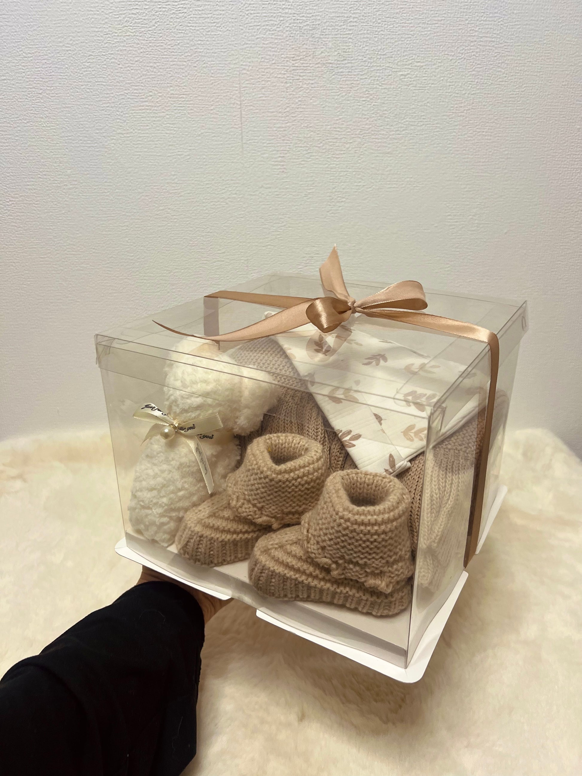 Ontdek onze prachtige beige baby giftbox perfect voor een pasgeboren baby of je lieve nichtje.