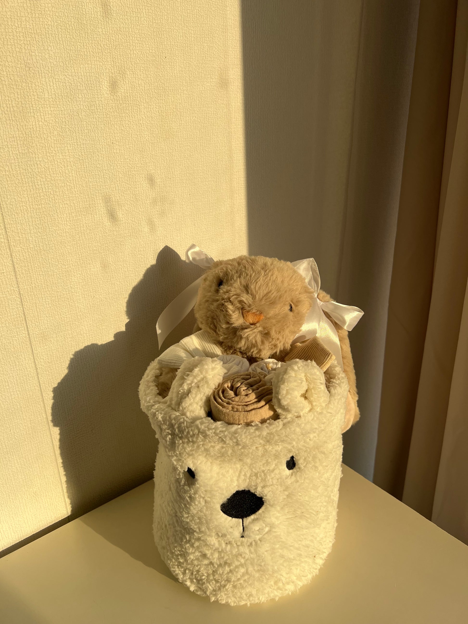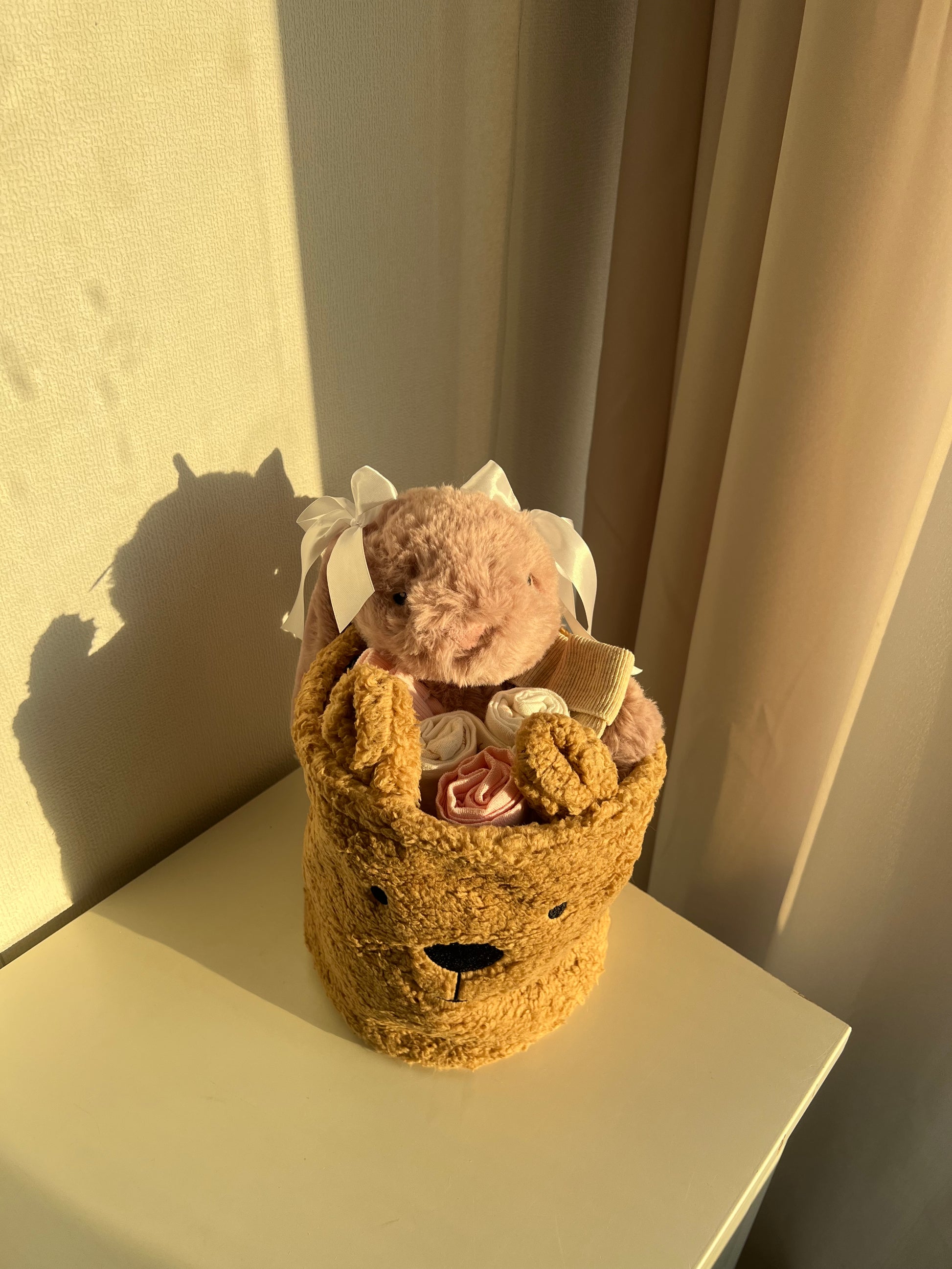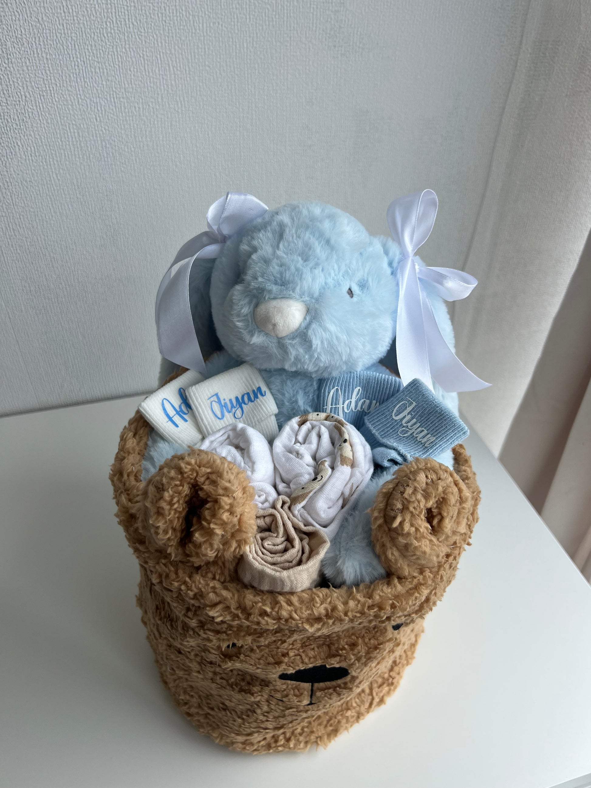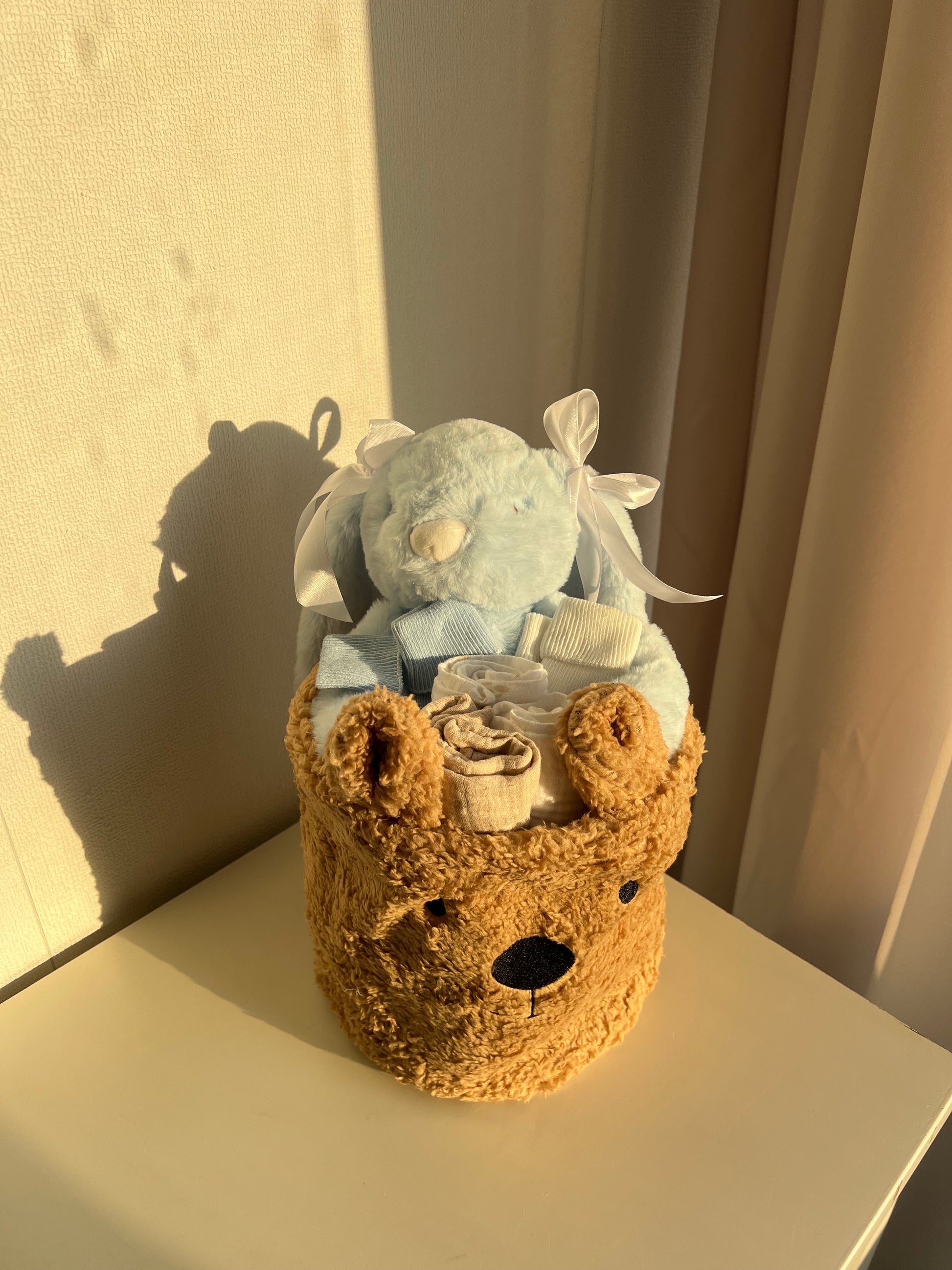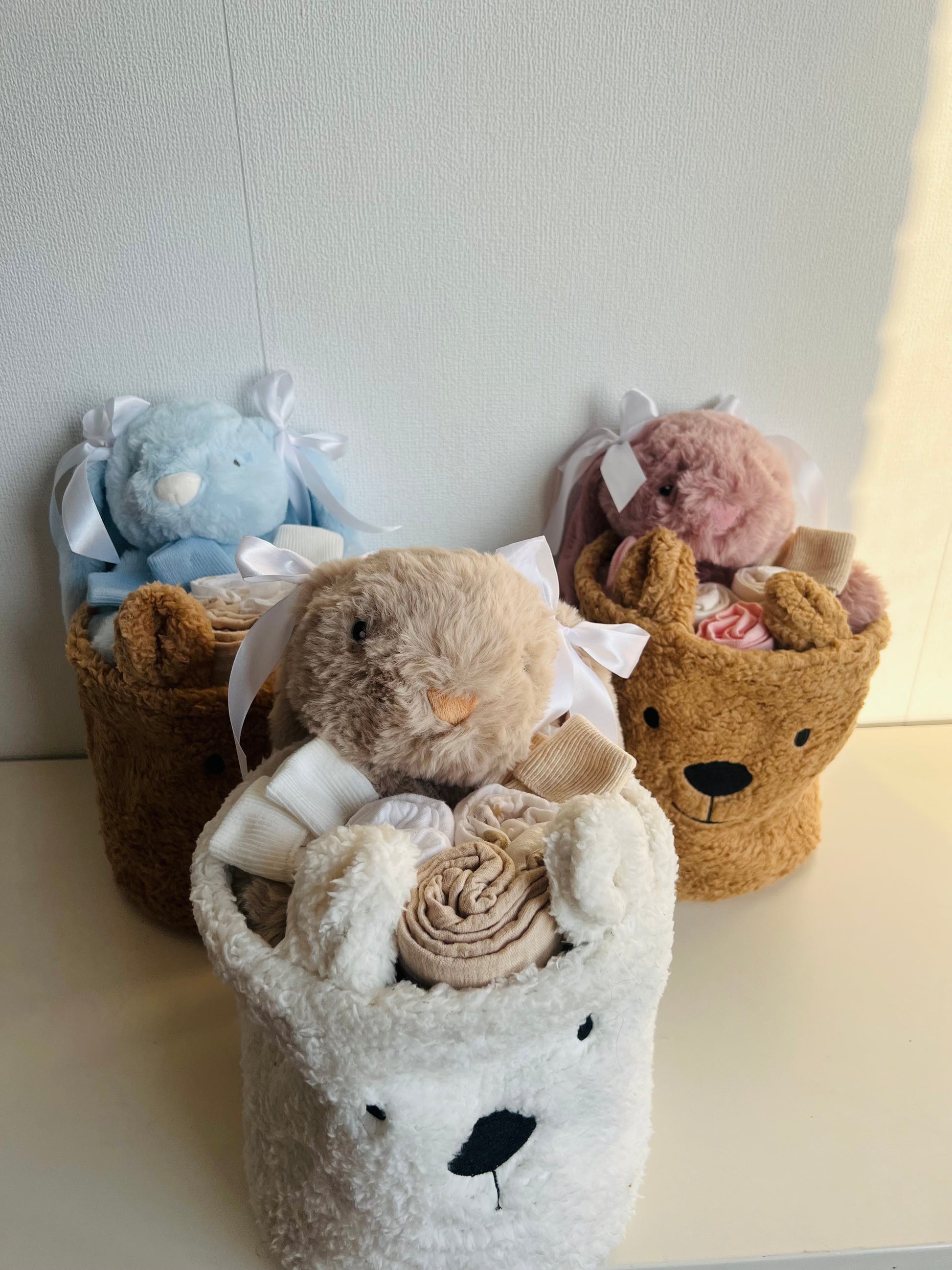 Op zoek naar een luxe en uniek babycadeau? Onze Teddy Giftbasket met knuffelkonijn bevat alles om het nieuwe wondertje te verwennen:
